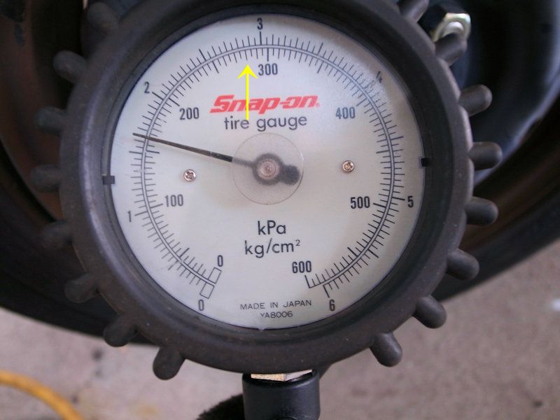 この車の規定圧は280kpaですので、本来は黄色い矢印の所。
