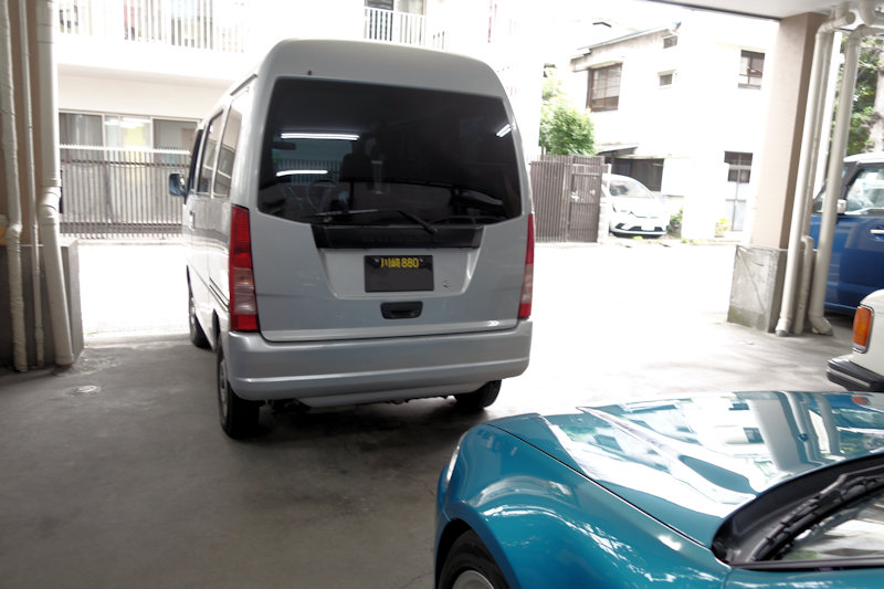 直ぐに作業場へと戻り。SOSのお車がご入庫です。