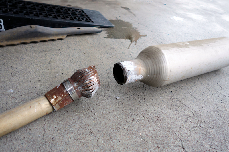 外したマフラーは既に半分に折れていました。