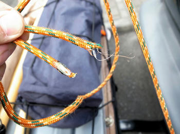 登山ロープをも溶かす高温になります。カヌーが落ちなくて良かった...(=_=)