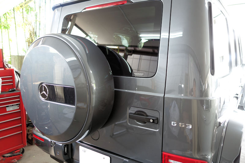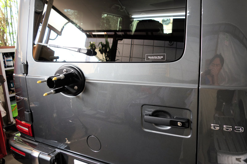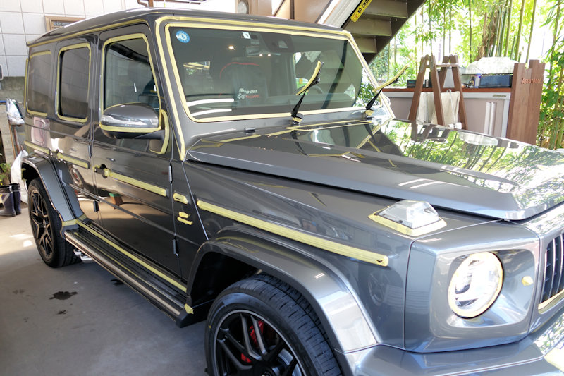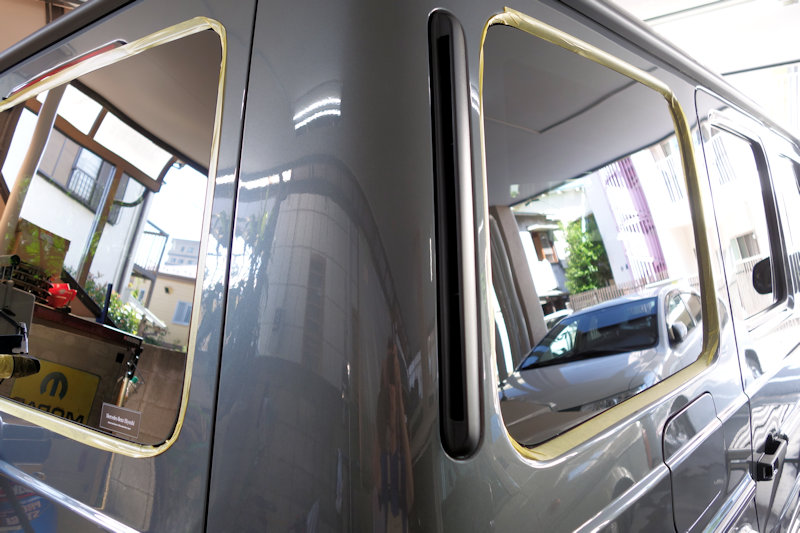 ボディーに、ガラスの撥水剤が付かないようにマスキング。