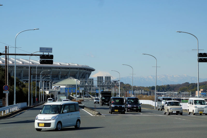 検査場へと向かういつもの道。今日は遠くが霞んでいます。