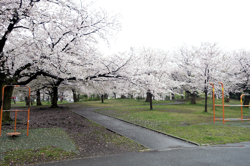 近所の公園を抜けていきますが、こんなに寂しい桜は初めてかも。