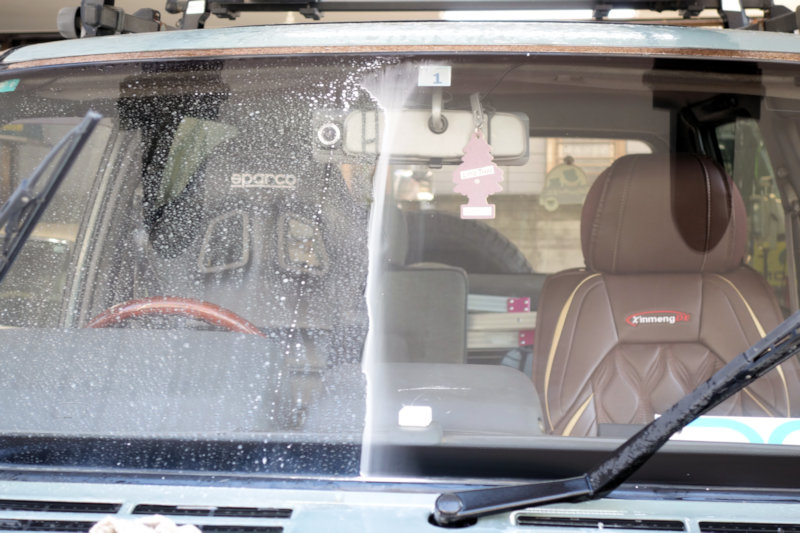 ラフロードを走った際に、泥をワイパーで掻いたのが原因。(*_*)