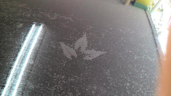 洗車していると、ルーフにリーフの焼き付いた跡がありました。