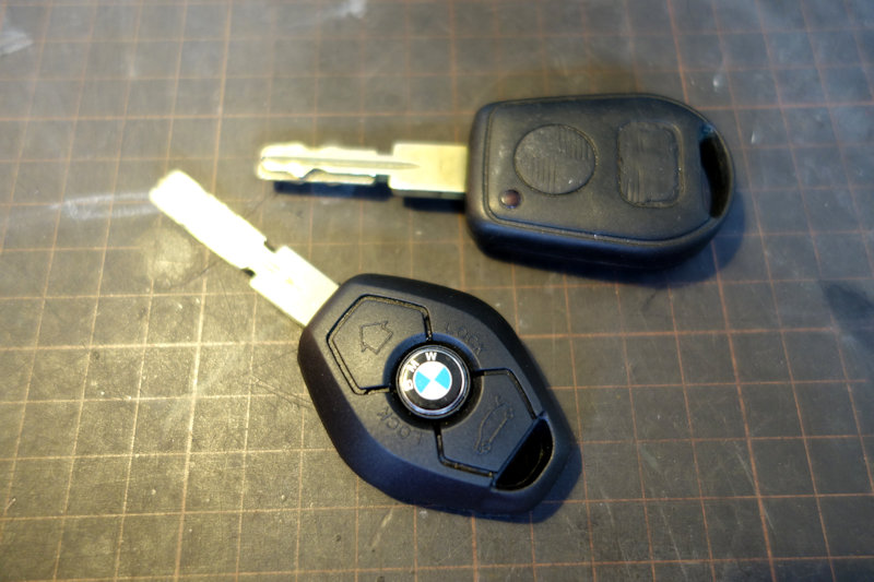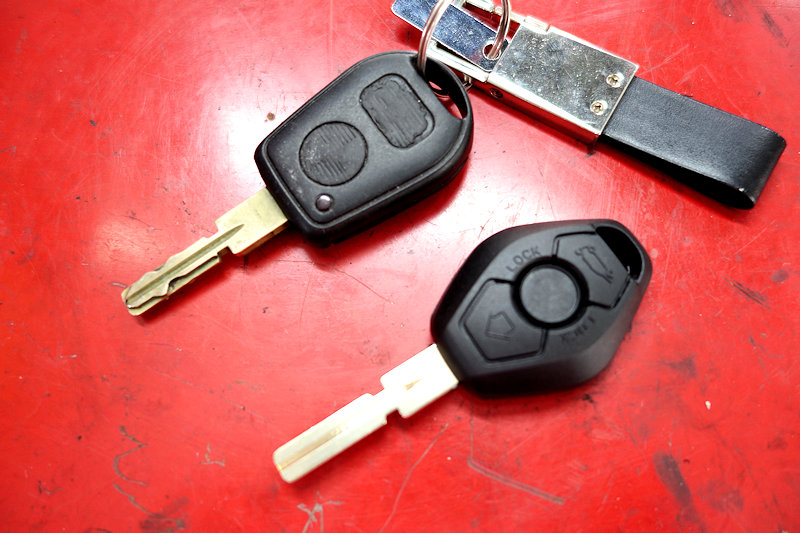 それも後期型の純正キーを使います。下が電波式の鍵です。