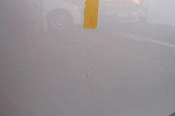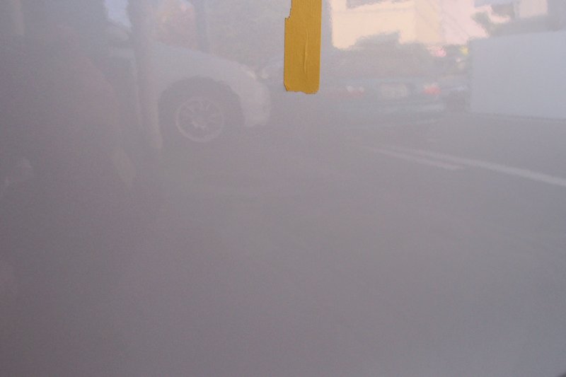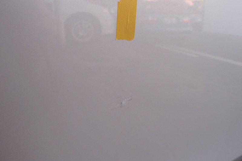 目印に貼った黄色いテープの下辺りに、相手車の白い塗料が付着しています。
