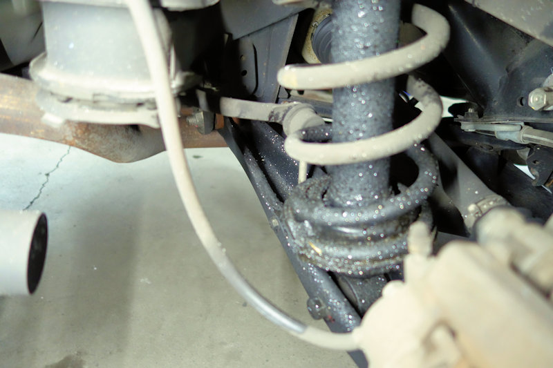 足まわりを点検していると、ショックからオイル漏れ。(>_<)