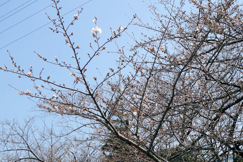 陸運局にある大きな桜の木は、ポツポツと咲き始めていました。