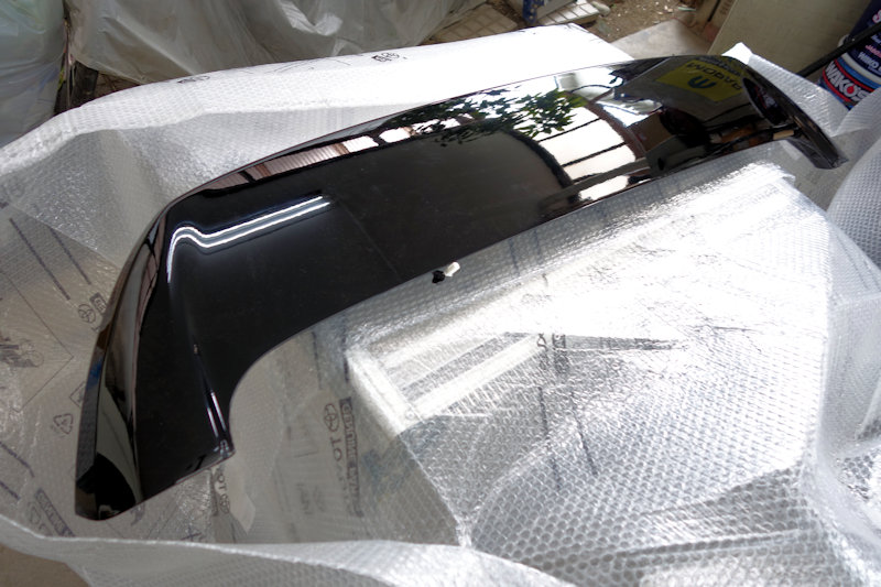 休憩中に、色を塗り直したベルファイアーのスポイラーを仕上げます。