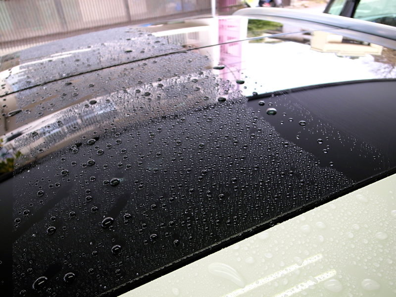 ガラスの撥水加工をしたので、水玉コロコロ。