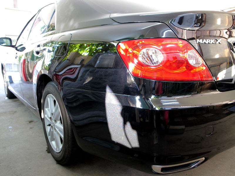 作業を無事終えこれから納車です。マークXの黒は、真っ黒ではなく結構賑やかな黒でした。