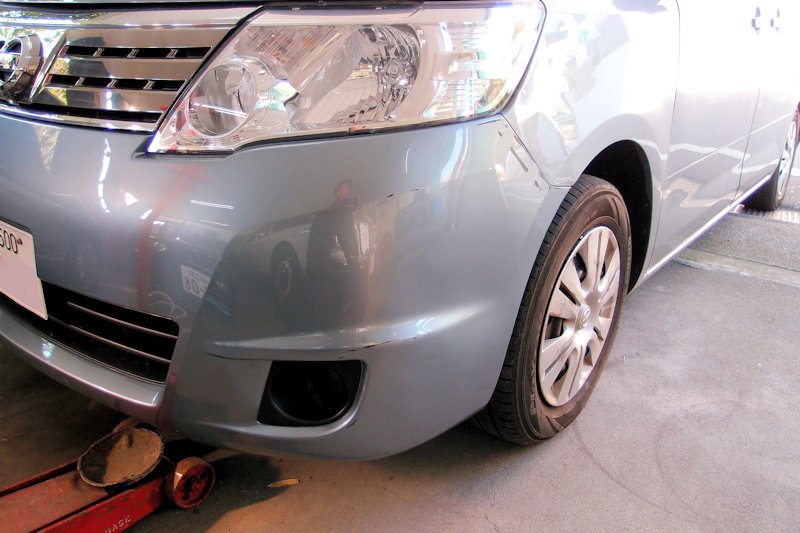 お金を掛けたくないので、バンパーも外さずに修正です…