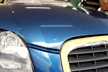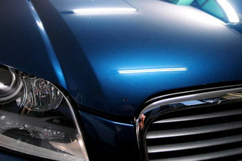 トヨタ車用のブルーマイカがあったので、傷を一個ずつ塗りつぶし作業。