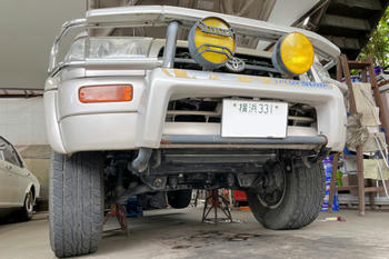 最初はオイル漏れでベタベタ、昨日は高圧洗浄したのでビシャビシャ。
