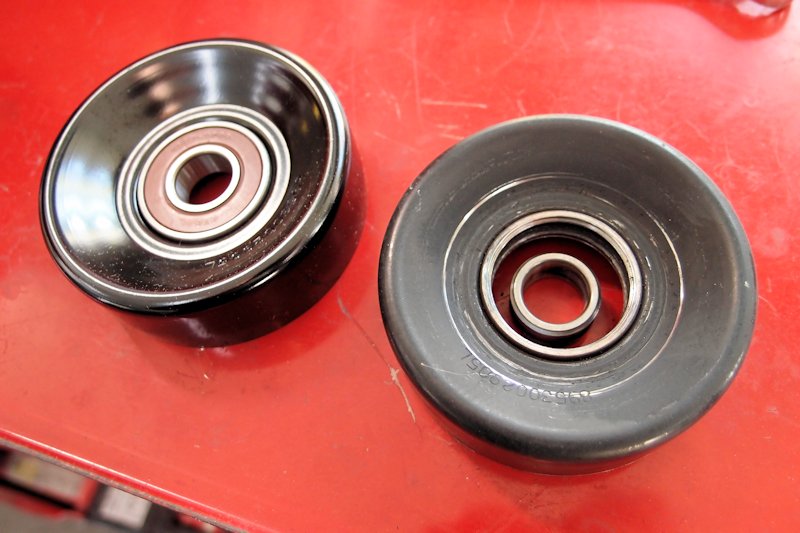 外したプーリは、ベアリングが飛んでしまってこんな状態。(@_@)