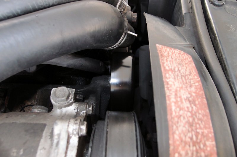ファンベルトを支える、アイドラプーリーがずっこけています。