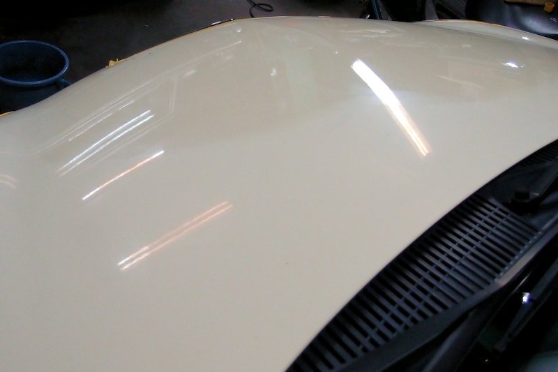 途中でボディーも気になり、ボンネットを部分的に磨いてみました。
