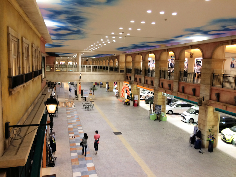 道の両側がショッピングモールで車の渡れる橋で繋がっています。