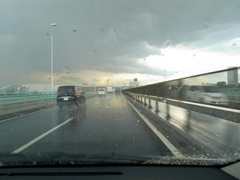 その帰りにまるで台風のようなどしゃ降りです。(-_-;)oioi..