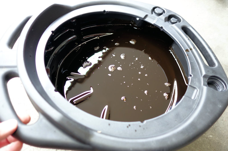 オイルを抜いてみると汚いだけで無く、量が少ない。(-_-;)