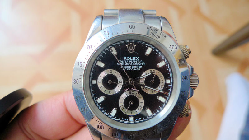ん?コピー物の時計です。中身はスイス製だそうですが作りがちゃちい。