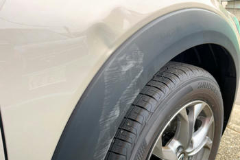 コーティング皮膜のお陰でキズは免れましたが、凹みが。。