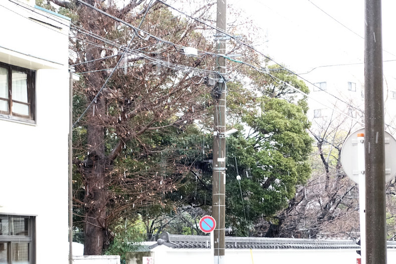 昨日は暑かった位なのに、今日は雪がモフモフ降っています。