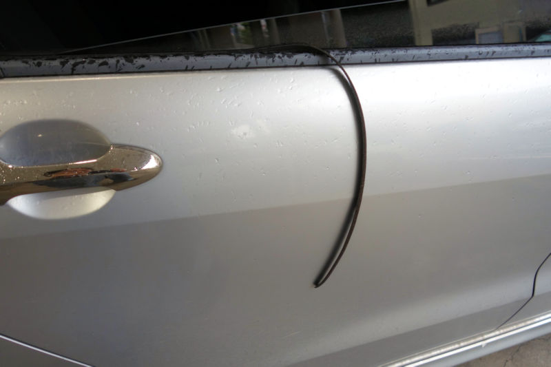 ドアの水切りモールが切れて、垂れ下がってしまったとのこと。