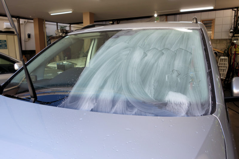 先ずはガラスの撥水加工のための、ガラス磨きから。