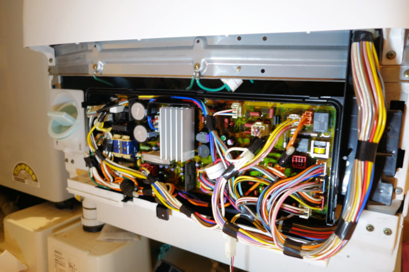 早速届いた部品を基板にハンダ付けして、洗濯機に戻します。