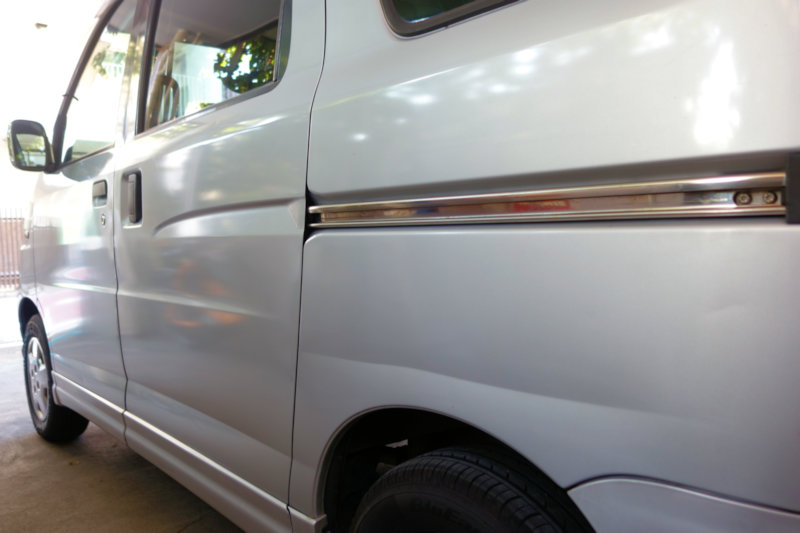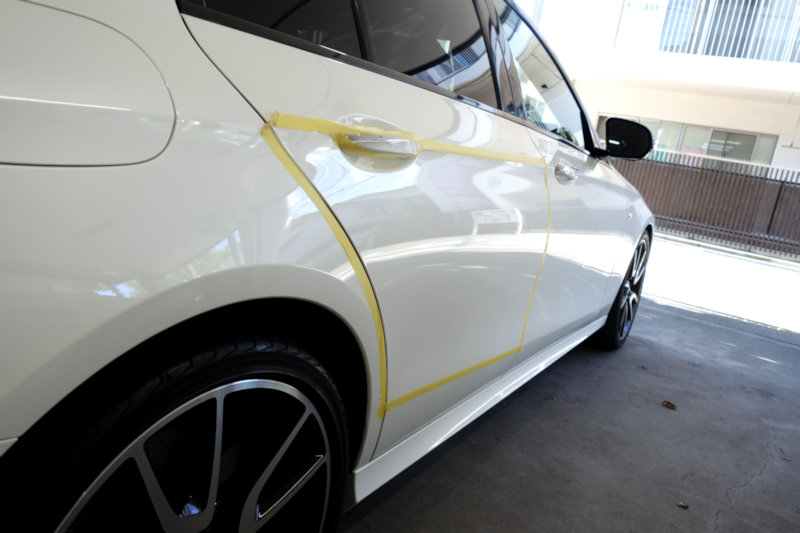 以前デントリペアーをしたドアを、部分コーティング致します。