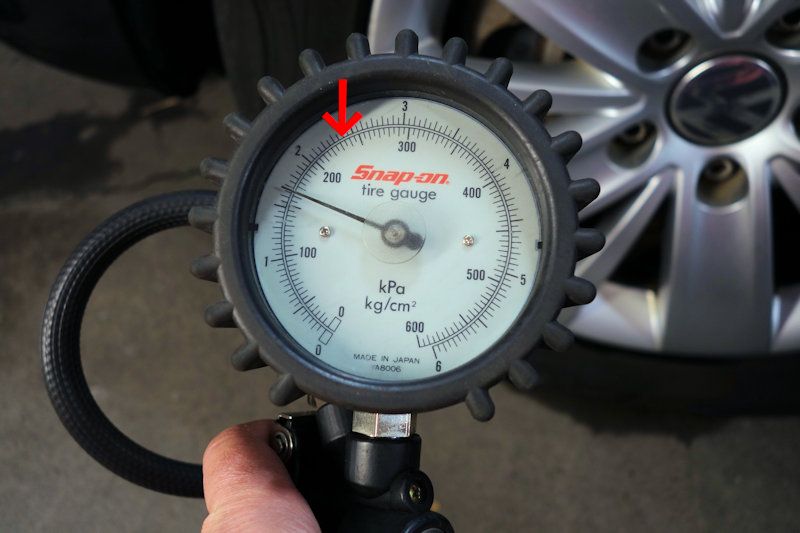 メーター内にも、空気圧不足の警告灯が点いていました。