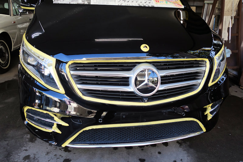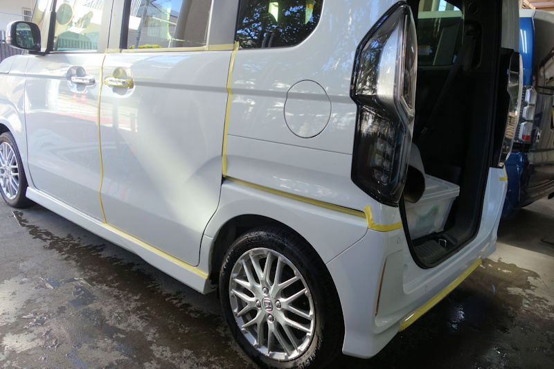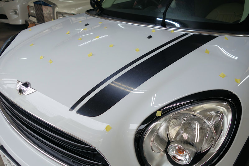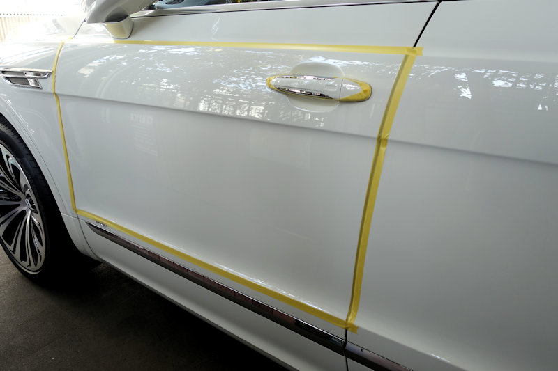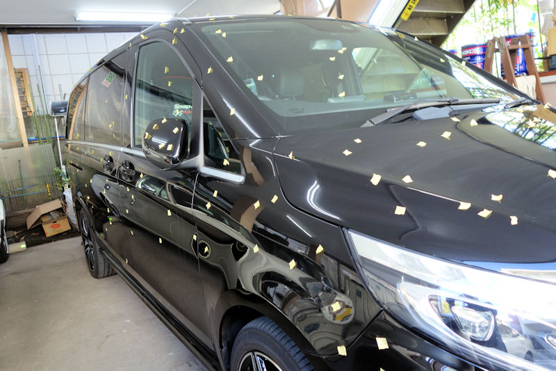 車体全体に及ぶため、マスキングで傷の場所を示しますが