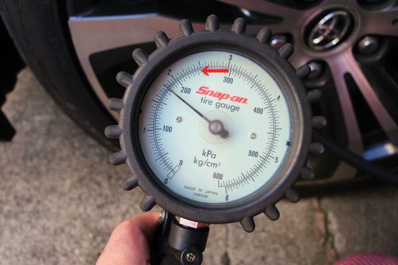 かなりペッチャンコ。40タイヤなのに170kPa(約1.7キロ)しか