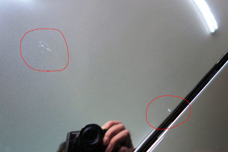 数百カ所の飛来した石の痕の中で、3個だけ塗装の欠けがありました。