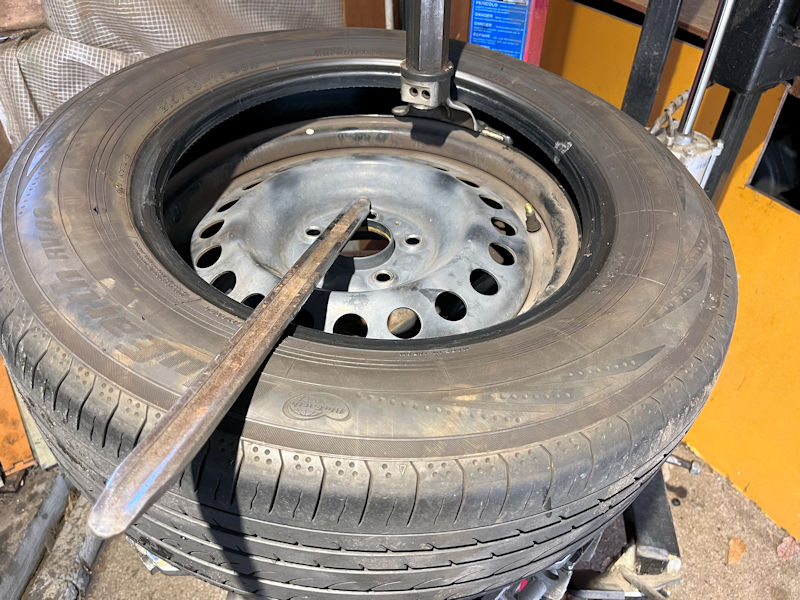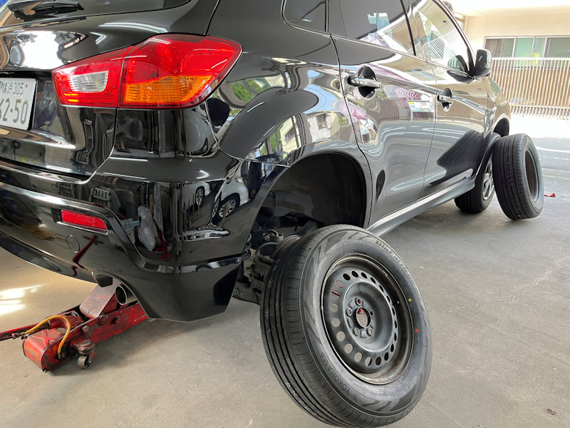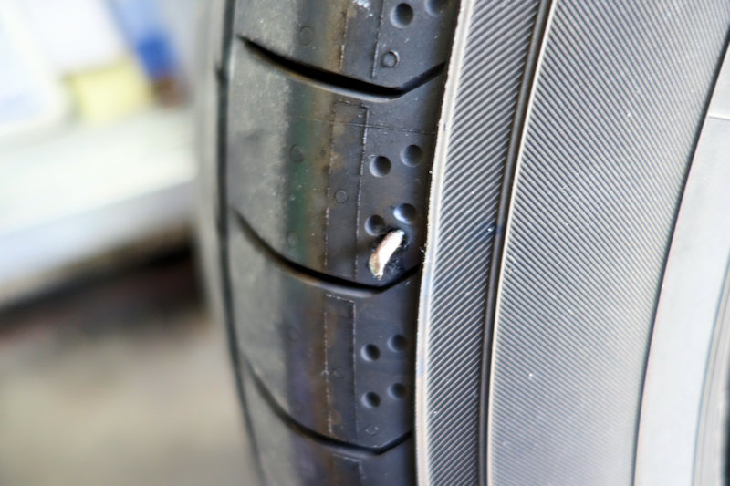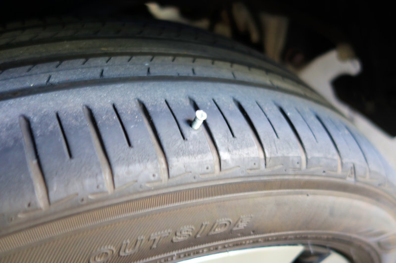 先日車検をした際に、タイヤに釘が刺さっていたお車。