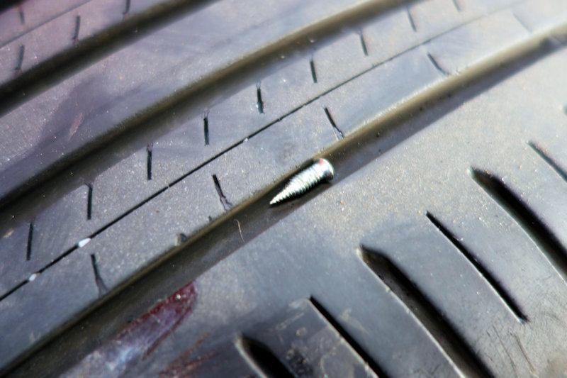 前車との車間距離が短く、前車の起こした釘を踏んでしまったか。