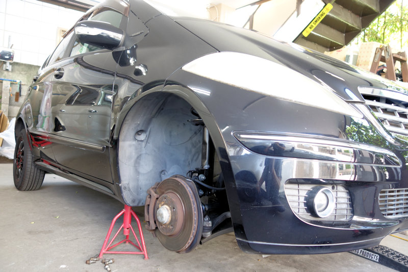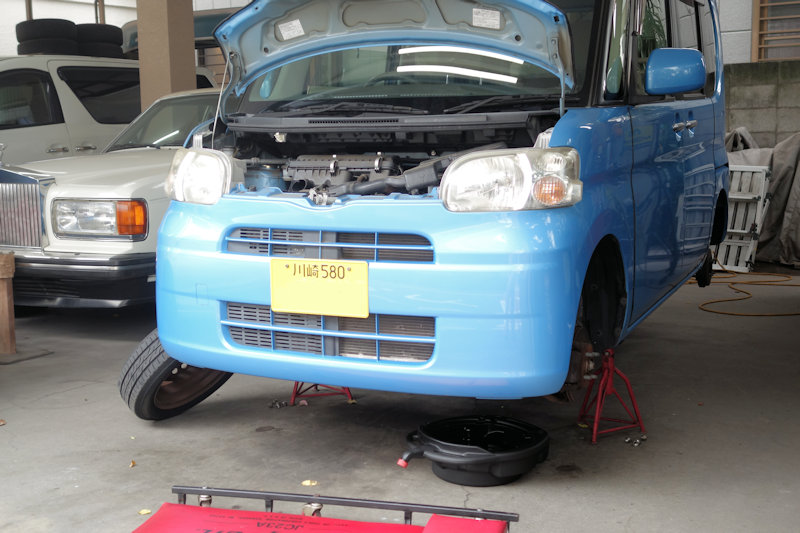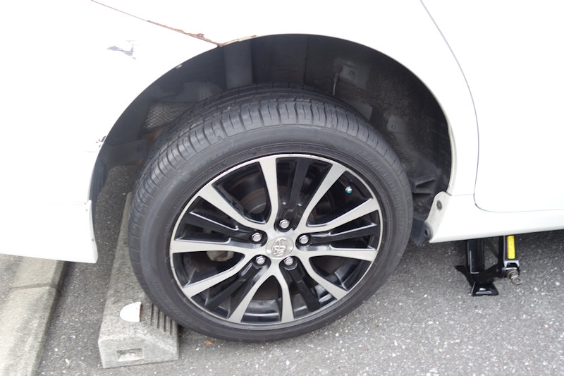 既にオーナーさんが車を上げ、ナットも緩めてある状態でした。