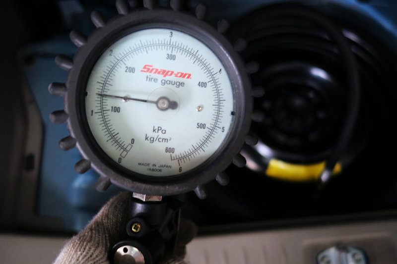 一通りの整備を終え、最後にタイヤのエアーチェック。