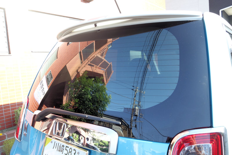 これで後ろからの日差しが和らぎ、車内が見えなくなりました。(^_-)