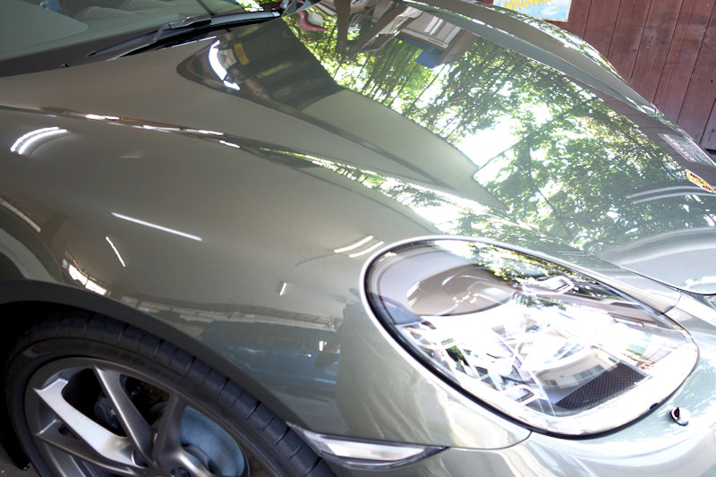 体温より高い気温で、洗車後も車のボディーは熱々。