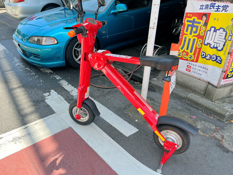 原付ナンバーが付いている、電動式折りたたみバイク。