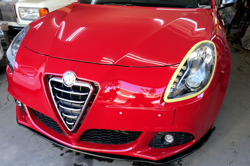 洗車をして、マスキングが終わったところで車を上げて確認。