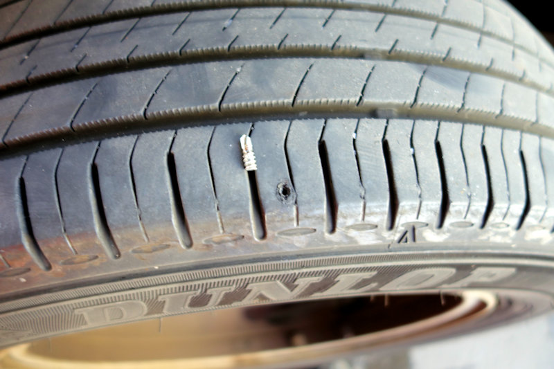 タイヤの外周を確認しますが、刺さっている物は見当たりません。