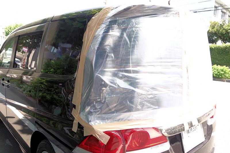 バックで駐車場の構造体へ激突してしまったとの事。