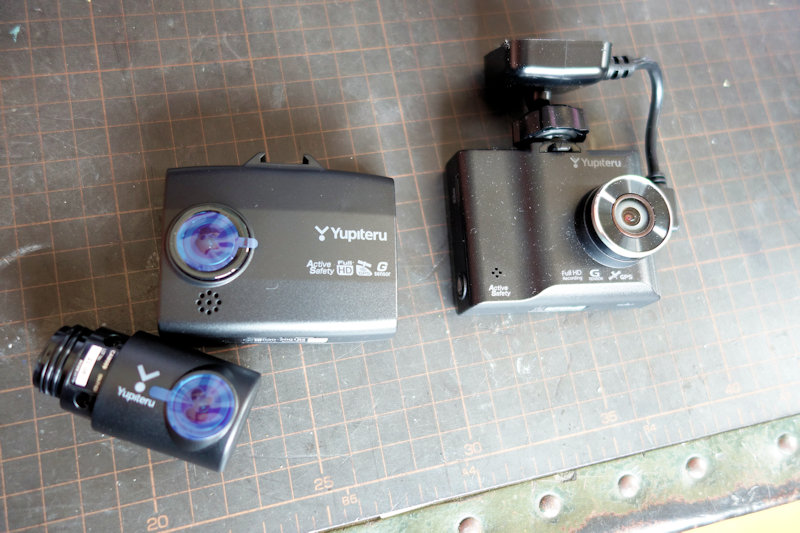今回は前後録画タイプにしました。いずれもユピテル製。