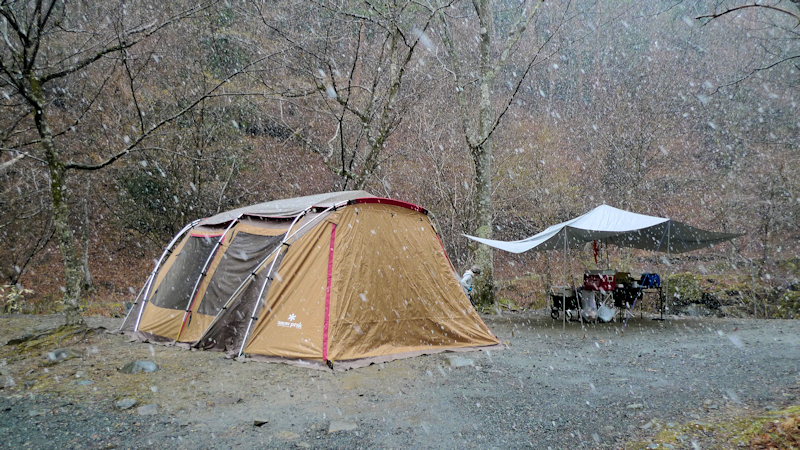 設営時には天気が回復するも、その後は結構な降りでした。
