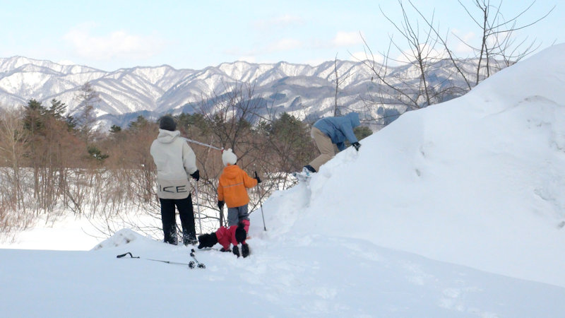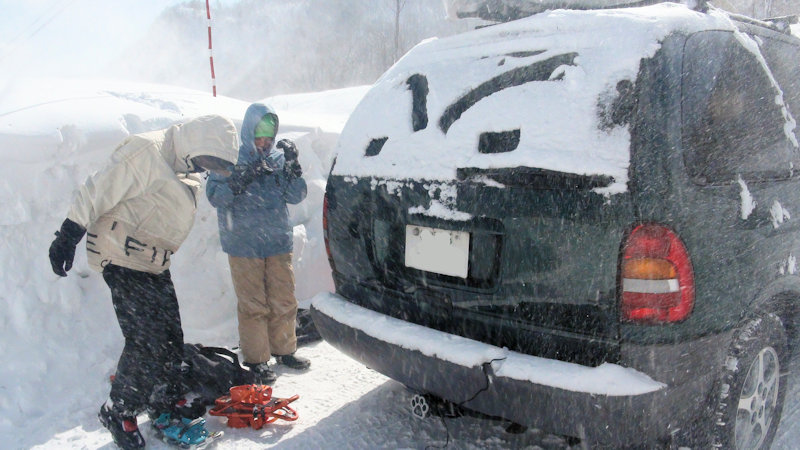 思っていたより雪が多く残っていて、車の高さと同じぐらいです。