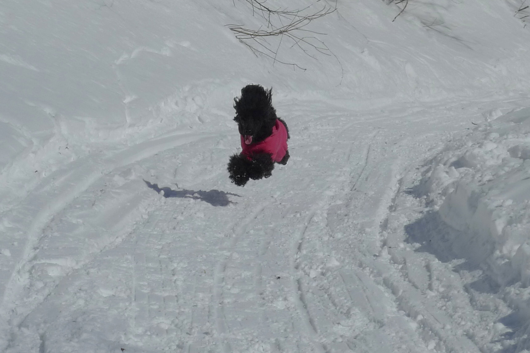 この雪の下は川なので落ちたら大変~。毎年同じ形状では無いので、